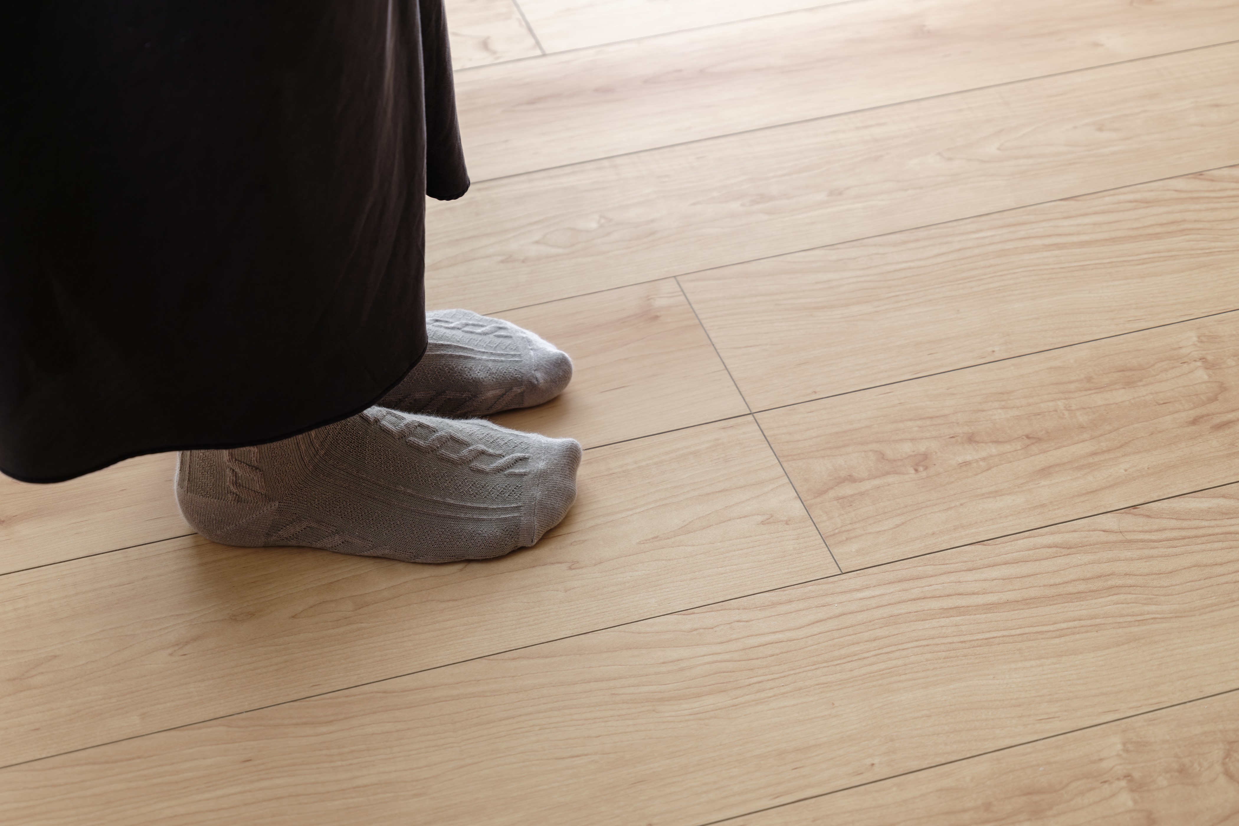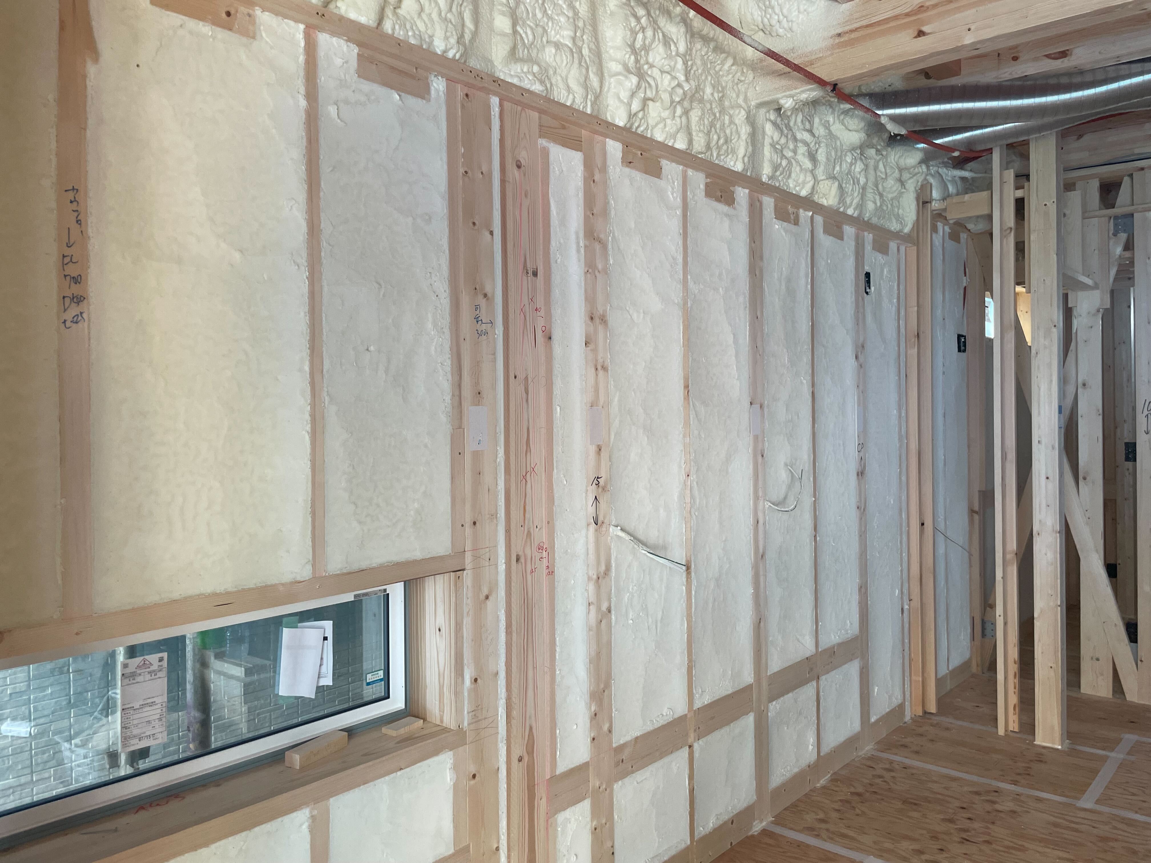 壁と屋根は「外張断熱+内側吹付断熱」、床もダブル断熱仕様で、冬は床暖房のような暖かさ。