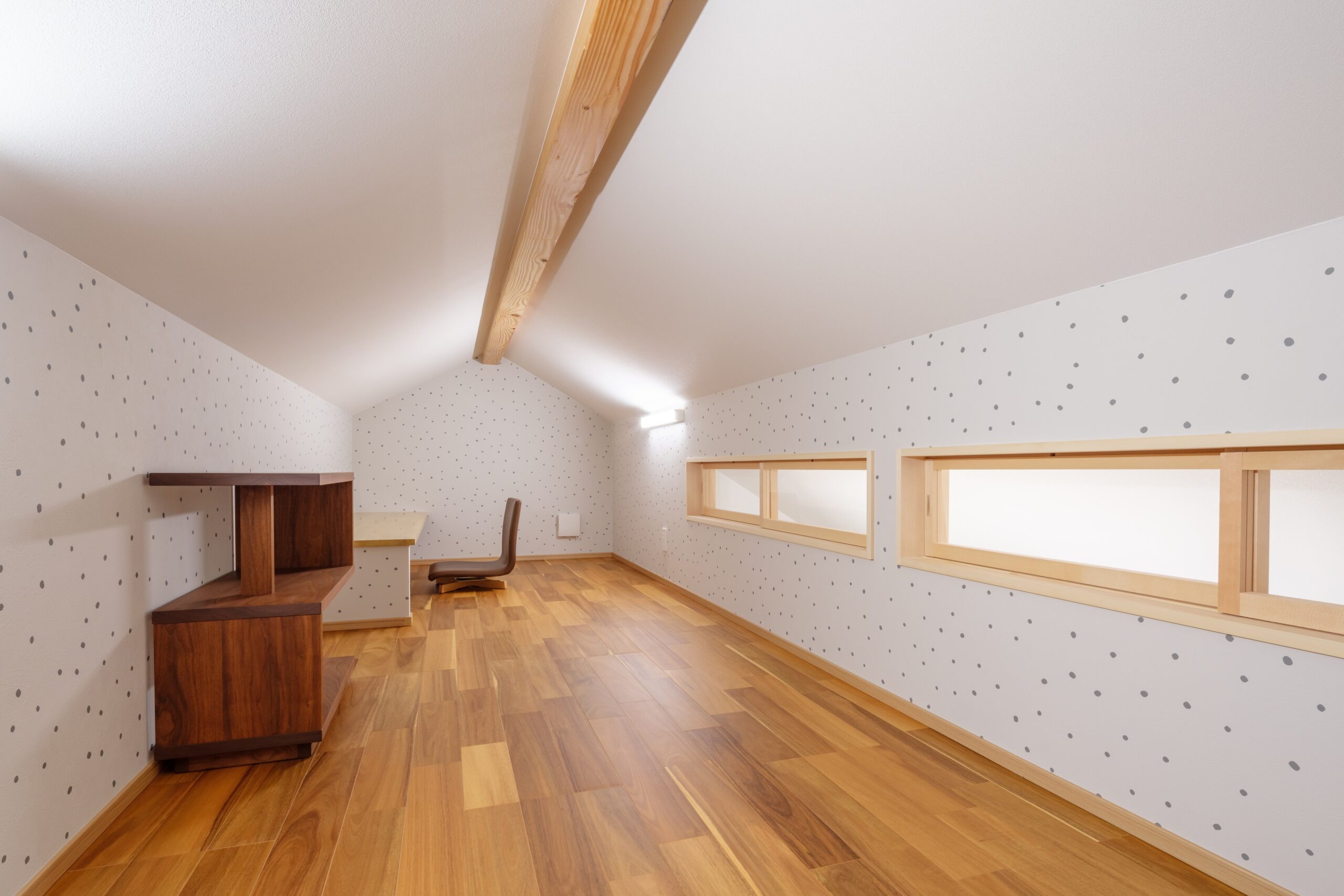 屋根裏には、趣味を楽しめる特別な場所を。カウンターを設けた作業に没頭できる、つい長く居たくなる憧れの屋根裏部屋です。